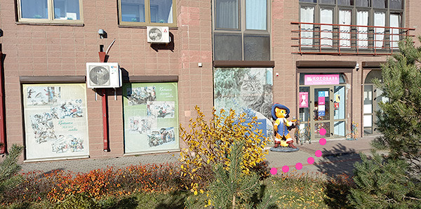 Как пройти от метро «Малиновка» к экспозиции «Коты и Мечты»: налево и вперёд по направлению движения поезда.