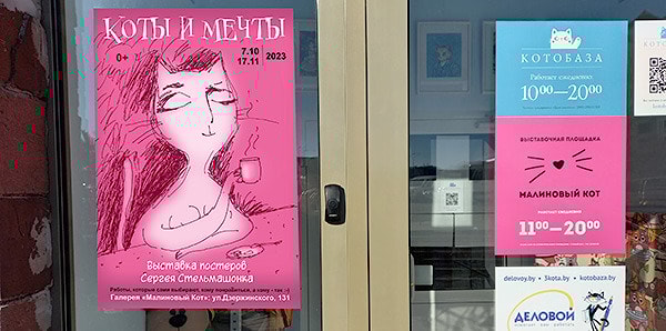 17 ноября 2023 года в 18.30 на выставочной площадке «Малиновый кот» (Минск-Дзержинского-131), состоится ЗАКРЫТИЕ выставки постеров «Коты и Мечты» Сергея Стельмашонка.