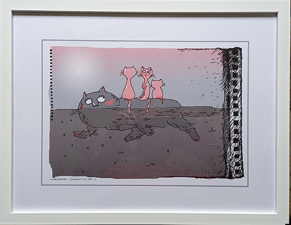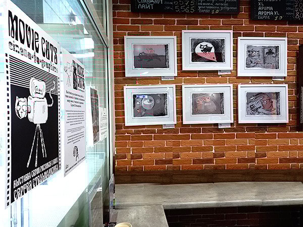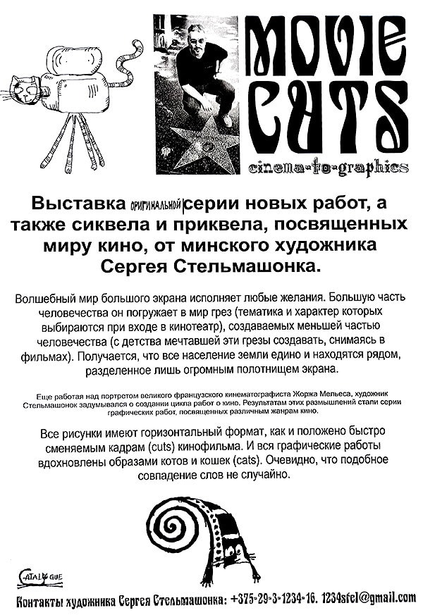 Все рисунки имеют горизонтальный формат, как и положено быстро сменяемым кадрам (cuts) кинофильма. И вся графические работы вдохновлены образами котов и кошек (cаts). Очевидно, что подобное совпадение слов не случайно.
