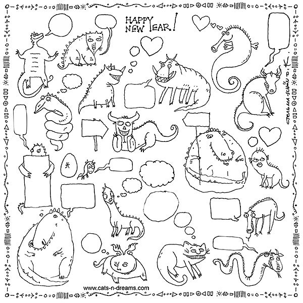 Открытка-самоделка: распечатайте на принтере и раскрасьте, как вам нравится, а также добавьте новогодние пожелания от дракончиков своим близким (или даже себе))) Чтобы скачать открытку в очень хорошем разрешении, нажмите ЗДЕСЬ