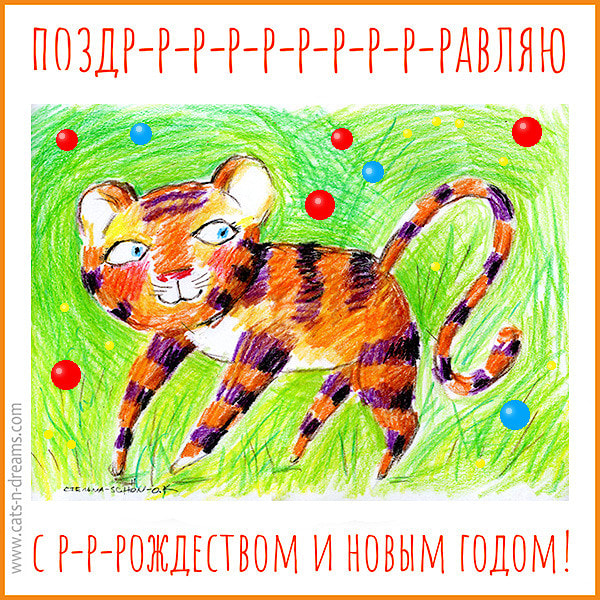 Поздр-р-р-равляю с Р-р-р-рождеством и Новым годом! - скачать забавную открытку бесплатно