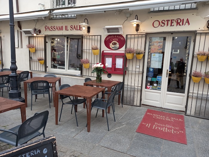 Все для утреннего перекуса сервировалось в соседнем кафе «Osteria», а именно: классический итальянский завтрак, встречающий тебя запахом идеального кофе и секунду назад испеченных пирогов – яблочного, шоколадного, пирога с вареньем (кажется, клубничным).