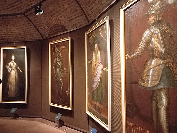 Для начала отметим, что дворец восстановлен просто изумительно. Начинается экспозиция длиннющей портретной галереей всех королей Пьемонта, от самого первого (знаменитого своей страстью к охоте) до изысканных сеньоров с удивительно красивыми лицами (что, между прочим, встречается очень редко в европейских династиях, где от лиц монархов порой жуть берет).