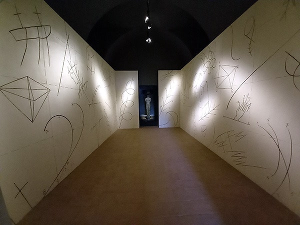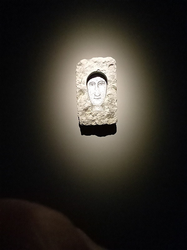 Буквально в самую последнюю секунду меня ждал маленький подарок от духа: я заметил приоткрытую дверцу в глухом каменном фундаменте дворца. Сюда никто не заходил, но азарт исследователя заставил меня заглянуть внутрь. Так я попал в очень необычную инсталляцию, которой были посвящены три комнаты. В первой в стену вмонтирован маленький каменный лик.