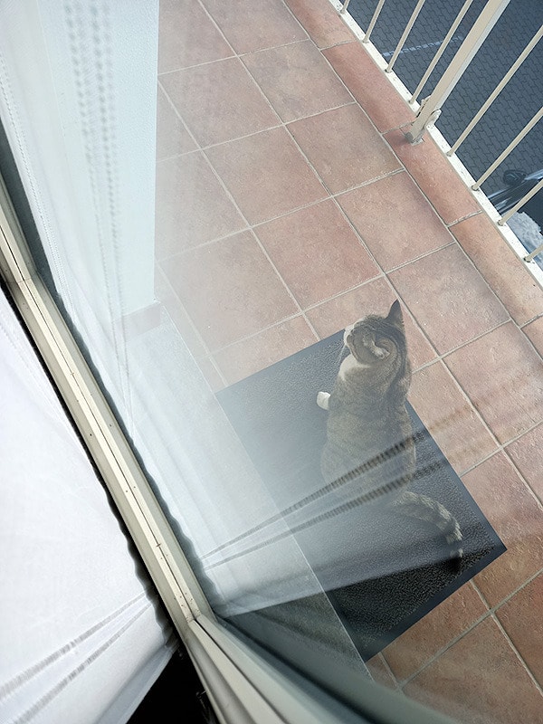На фото вверху: на коврике перед нашей дверью ежедневно обитала дружелюбная кошка.