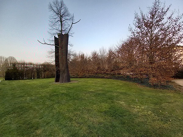 Завершая обзор садов и возвратившись ко дворцу, уже почти на выходе из дворца видишь современные произведения ландшафтного искусства – инсталляции, вписанные в окружающее пространство. Честно говоря, трудно понять, что именно хотели сказать художники, но наблюдать за бронзовыми копиями гигантских деревьев было любопытно.